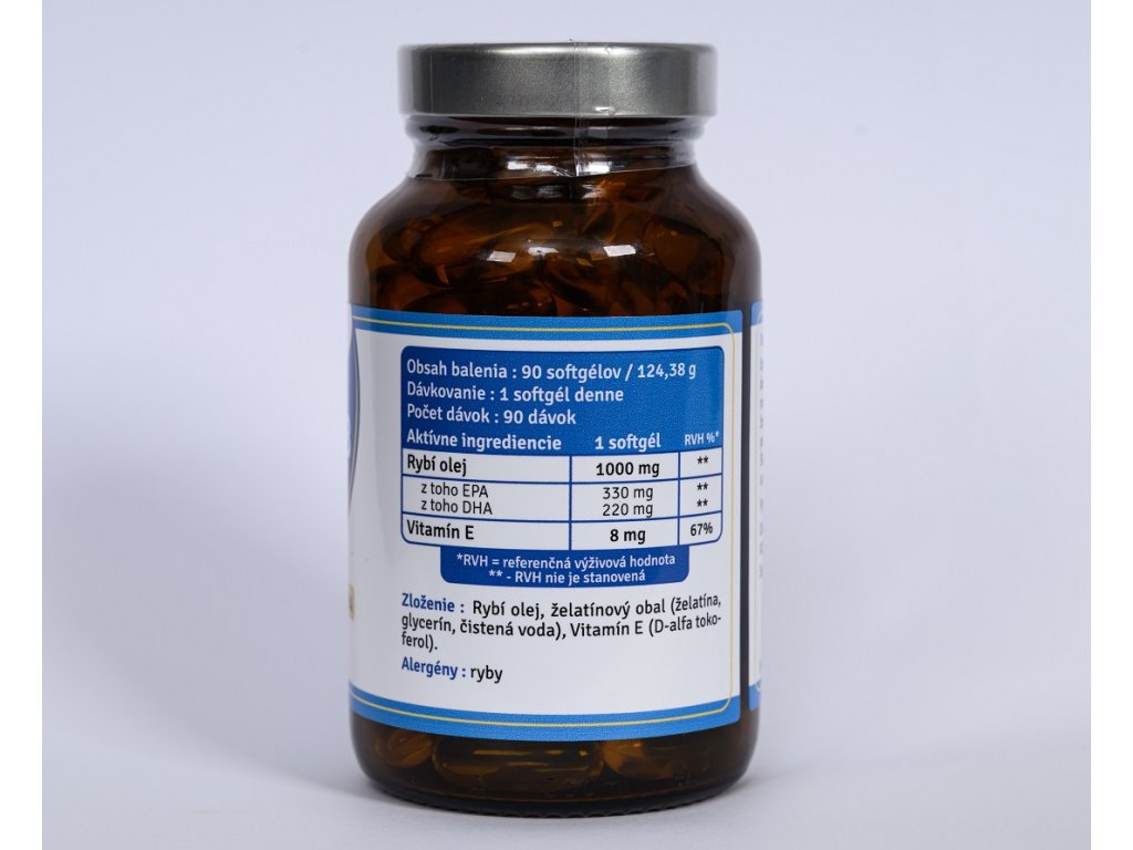 Podporte svoje zdravie s vysoko kvalitnými omega-3 mastnými kyselinami. Každá kapsula obsahuje 1000 mg rybieho oleja, z toho 330 mg EPA a 220 mg DHA, čo prispieva k správnej funkcii srdca, mozgu a zraku. Pridaný vitamín E pôsobí ako antioxidant a chráni bunky pred oxidačným stresom.